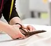 - Con la prenda extendida y lisa, se trazan con la tiza los bordes de la parte superior, inferior y los costados. Se trazará solo alrededor de los bordes de la sección principal. Se deberá hacer una pieza del patrón para cada sección, enfocándose en una sección a la vez.