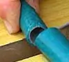 -Cortar un tramo de la manguera que se extienda unos 3 centímetros a ambos lados del sitio de la rotura. Si no se cuenta con el kit de reparación, cortar también un tramo de unos seis centímetros.