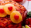 - Para presentar el jamón de una manera atractiva que impacte el sentido de la vista, adorne con rodajas de piña, guindas rojas y verdes.