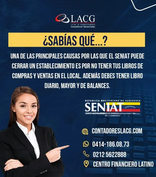 Sabías que una de las razones por las que el SENIAT puede cerrar tu establecimiento es por NO TENER tus LIBROS DE COMPRAS y VENTAS en el local; además debes tener LIBRO DIARIO, MAYOR Y DE BALANCES