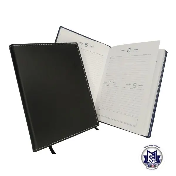 Agenda de edición 2026, un dia por página 110 hojas . Medida 15 cm ancho x 21cm alto . Cuenta con hoja de datos personales, calendario, programador anual, cuadro de objetivos anual, tabla de conversión y medidas, entre otros. Con cubierta de semicuero cosida y cinta marca páginas. Colores disponibles negro y azul marino.