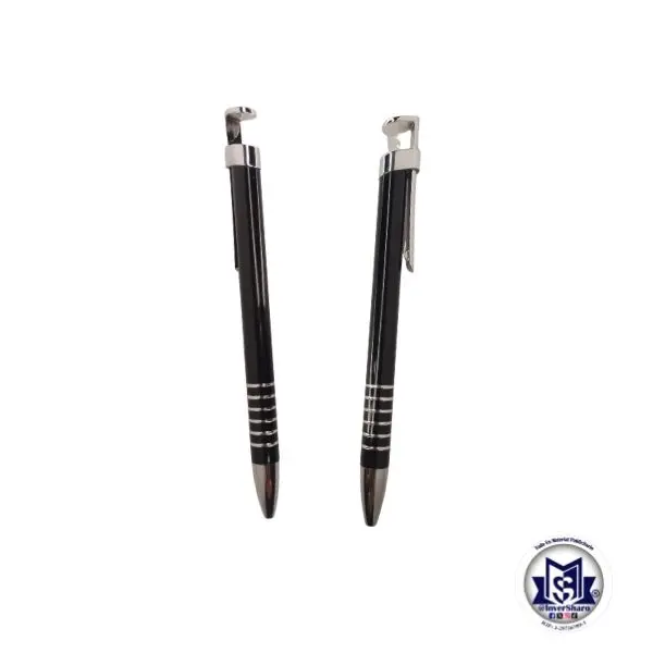 Bolígrafo metal porta celular tinta negra mecanismo rectátil colores disponibles: blanco y negro