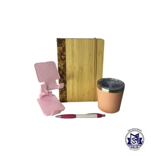 Cuaderno Corcho bambu con liga , Porta celular, Mini Vaso vinero, boligrafo plastico