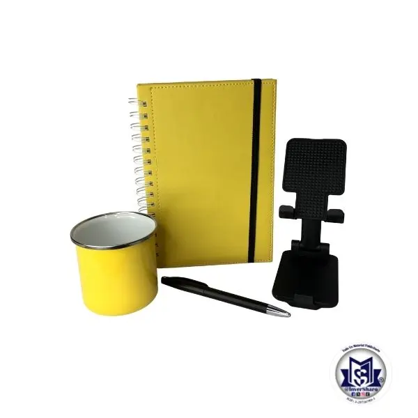 Agenda Cinaruco Anillada, tripa diaria permanente de 160 hojas, cubierta de semicuero con liga para cerrar, portacelular, boligrafo plastico , taza peltre