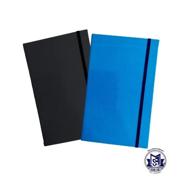 Cuaven Ejecutivo cubierta en semicuero cosido, medida 13 cm ancho x 21 cm de alto .Diagramación a rayas con espacio para fecha , incluye hoja de datos personales.