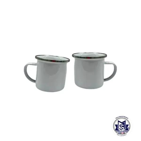 Taza de metal con borde negro capacidad 6oz colores disponibles: blanco, azul, rojo, negro, amarillo
